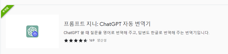 근데 이렇게만 쓰면 영어로 해야 되서 저는 여기에서 프롬프트 지니라는 프로그램도 설치해줬어요.