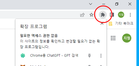 확장프로그램 설치를 모르시는 분들을 위해 설명을 해드리자면 아래 사진의 그림에 표시된 부분을 누릅니다.