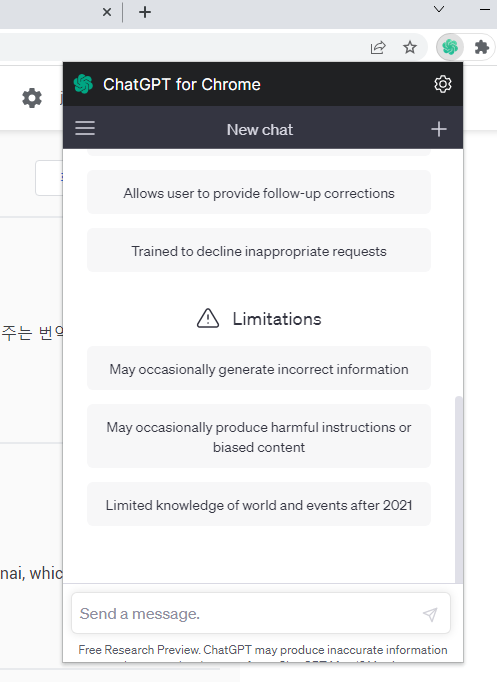 크롬에서 사용하는 챗GPT는 OPENAI를 사용하는 것으로 보입니다.