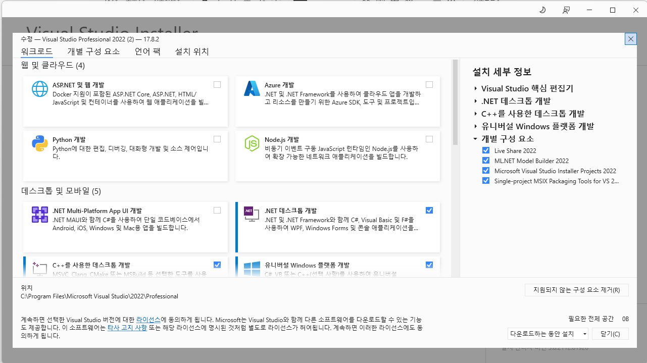 위 화면은 다를 수도 있습니다. 전 다른것들도 좀 추가해서 설치를 하는 중이라